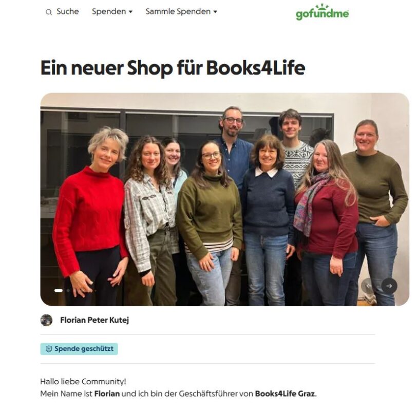 Link zum Crowdfunding: https://www.gofundme.com/f/ein-neuer-shop-fur-books4life