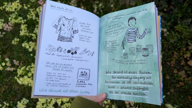 Lena Hällmayers Buch Klimaangst und Wandelmut ist mehr als eine Graphic Novel – es ist eine intime, künstlerische und emotionale Auseinandersetzung mit der Klimakrise. Die Illustratorin und Kunstpädagogin dokumentiert darin ihren dreijährigen Prozess, mit den überwältigenden Gefühlen von Angst, Wut und Hoffnung umzugehen, die die Klimakrise auslöst. Das Werk verbindet Tagebucheinträge, Comic-Episoden und Illustrationen zu einem bewegenden Protokoll, das Leser:innen dazu einlädt, sich selbst mit ihren eigenen Klimagefühlen auseinanderzusetzen.