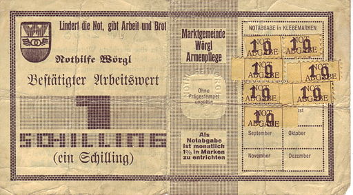 - Jeder Wörgler Schilling-Schein hatte auf der Vorderseite zwölf kleine Felder für Wertmarken.
