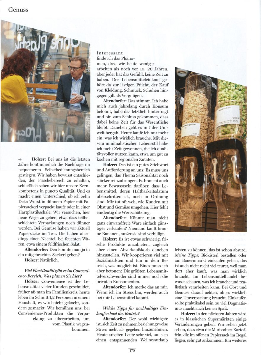 01.02.2019: „Die Steirerin“ interviewte Spar-Geschäftsführer Christoph Holzer und mich zum Thema Einwegplastik: