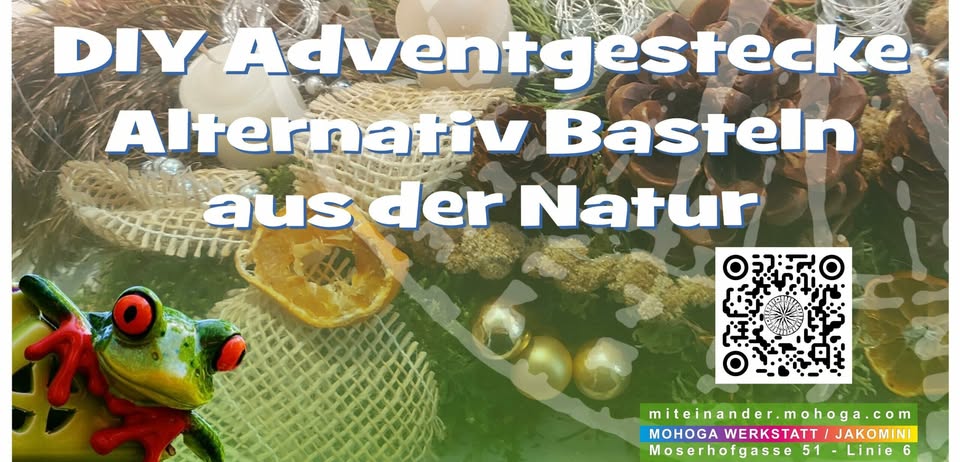 Ideen und Bastelsachen haben wir damit wir uns an diesem Tag kreativ ganz im Sinne von Zero Waste und Upcycling betätigen können. Gerne können auch Schleifen, Moos & Co mitgebracht werden. Wir verwenden keine Tanne dafür aber leere Dosen, alte, zerkratzte Kuchenformen, alles was wir in Garten und freier Natur finden wie zB Feuerdorn oder Karde, gebrauchte Schleifen uvm.