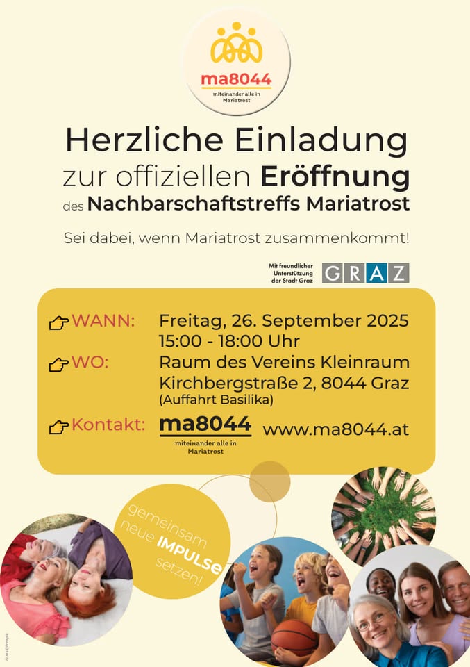 Seit 1. September 2025 gibt es mit Unterstützung der Stadt Graz auch im Bezirk Mariatrost einen Nachbarschaftstreff.