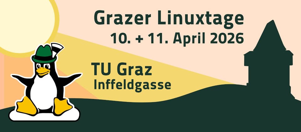 Die nächsten Grazer Linuxtage finden am 10. und 11. April 2026 auf der TU Graz, Campus Inffeldgasse statt.