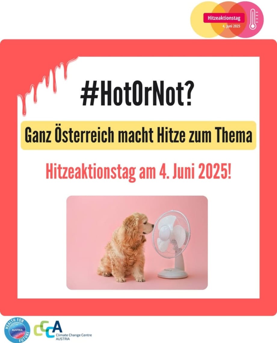 Es ist an der Zeit, das zu ändern! Deshalb steht der erste österreichische Hitzeaktionstag, am 4. Juni unter dem Motto: „Hitzeschutzplan für ALLE“: Hitzegefahren ernst nehmen – Hitzeschutz konsequent umsetzen.