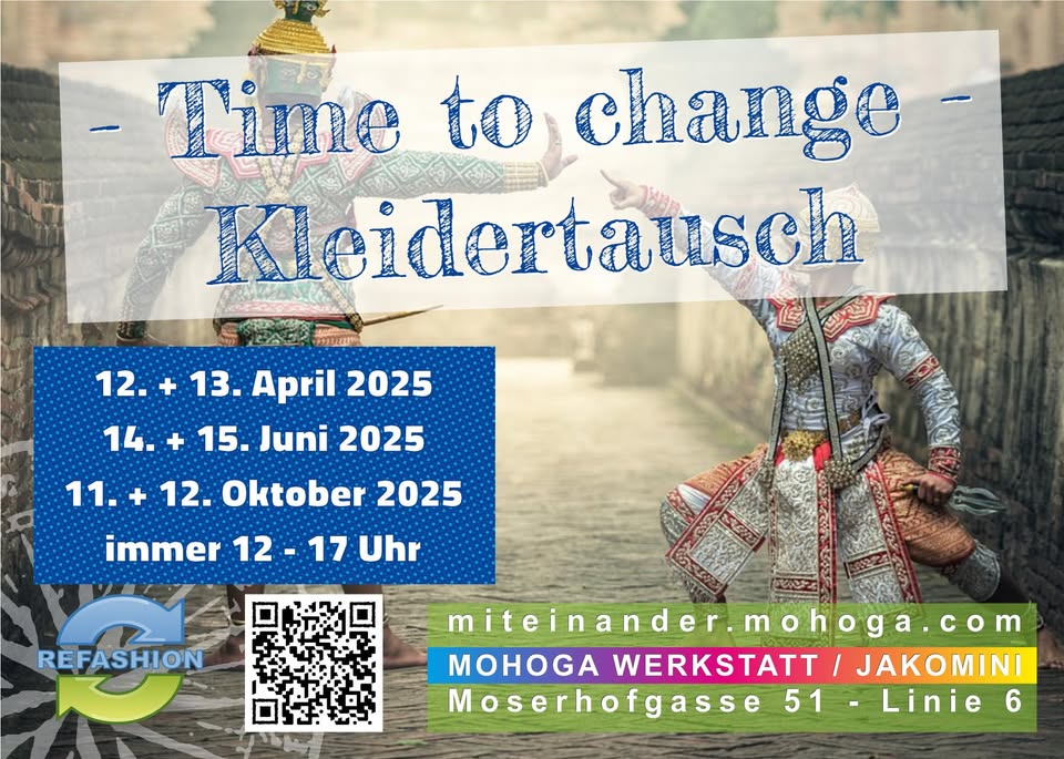 Beim Time to change Kleidertausch der Mohoga Werkstatt hast du von Anfang an eine große Auswahl und du kannst so viel mitnehmen, wie dir gefällt. Die Kleidung wird bei uns sortiert und schön aufgehängt, so hast du ein tolles ‚Shopping‘ Erlebnis.