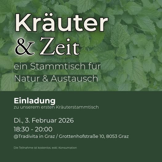 Kräuter & Zeit ist ein Kräuterstammtisch für alle, die heimische Pflanzen neu entdecken und altes Wissen lebendig halten möchten. Gemeinsam tauschen wir Erfahrungen aus, lernen Kräuter kennen und vertiefen unser Verständnis für Natur, Jahreskreis und achtsames Wahrnehmen. Ein ruhiger Raum für Neugier, Naturverbundenheit und gemeinsames Lernen.