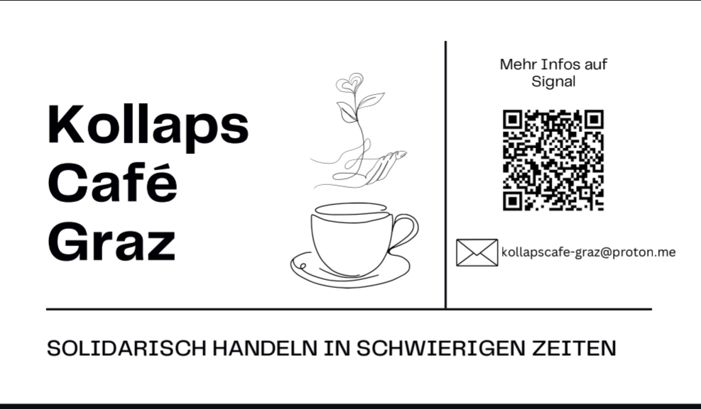 Wir sind eine wachsende Gruppe von kollapsbewussten Menschen in Graz. Uns ist bewusst, dass der Kollaps der Zivilisation das wahrscheinlichste Zukunftsszenario unserer Polykrise ist und dass wir uns schon mittendrin befinden.