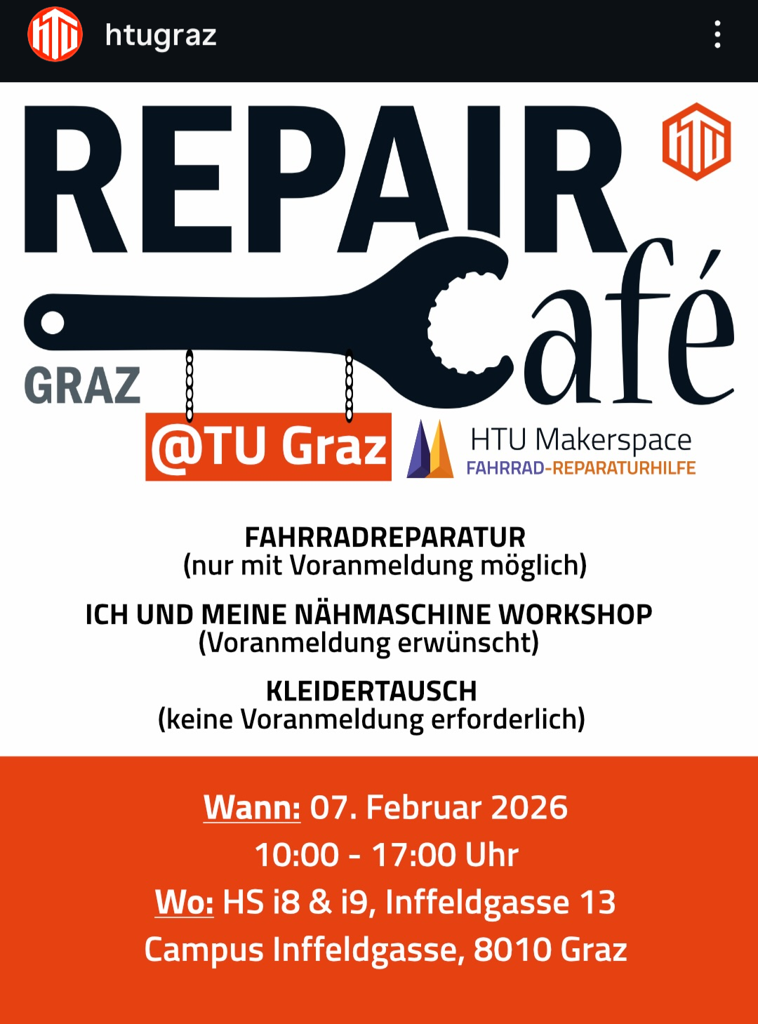 Repair Café Graz (+Kleidertausch +Nähmaschinen-Workshop + Fahrrad +Brillen) – TU Graz