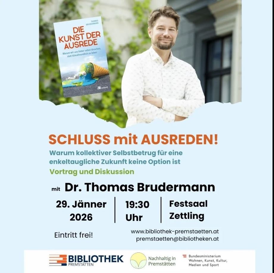 Wenn es um Veränderungen geht, dann sind auch die Rechtfertigungen nicht weit, warum es bei einem selbst, im eigenen Unternehmen oder im eigenen Land eben nicht klappt, und warum man besser beim Altbekannten bleibt. Was macht die Selbsttäuschung so attraktiv und was steckt hinter den allgegenwärtigen Ausreden? Was brauchen wir aus Sicht der Verhaltenswissenschaften, um eine „enkelfitte“ Gesellschaft zu schaffen? Wissenschaftlich fundiert und mit einer Prise Humor geht Thomas Brudermann diesen Fragen nach. Der Vortrag soll einerseits die Dringlichkeit aufzeigen und informieren, aber auch Mut machen, denn Veränderung kann von uns allen ausgehen. Jeder Einsatz für Klimaschutz zählt und zahlt sich meist auch aus!